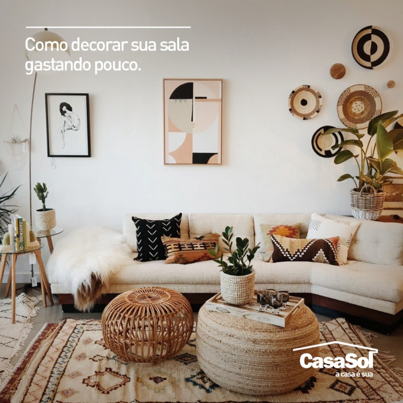 Pequenos detalhes podem fazer a diferença nessa decoração sem precisar de um grande investimento. Você pode começar definindo uma paleta de cores e escolher pequenos objetos que combinam, como quadros decorativos, uma mesinha de centro, vasos, e até mesmo as almofadas do sofá podem fazer parte disso.