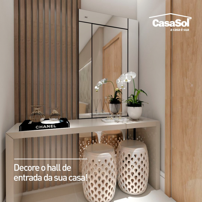 Invista em um espelho acima de um aparador e garanta uma boa iluminação para o espaço.