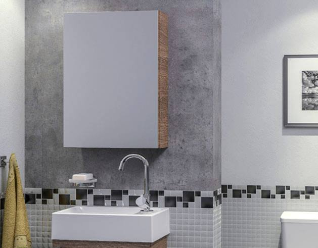 Também prontinhas para instalar, as espelheiras acomodam os itens de higiene, deixando tudo sempre à mão, sem precisar de bancada de apoio. Você pode dar uma conferida no visual e deixar o seu banheiro organizado!