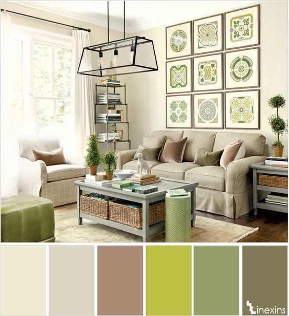 Nessa combinação temos uma variação de cores entre palha, bege, marrom, e três tonalidades diferentes de verde. Essas combinações de cores proporcionam um equilíbrio e calmaria.