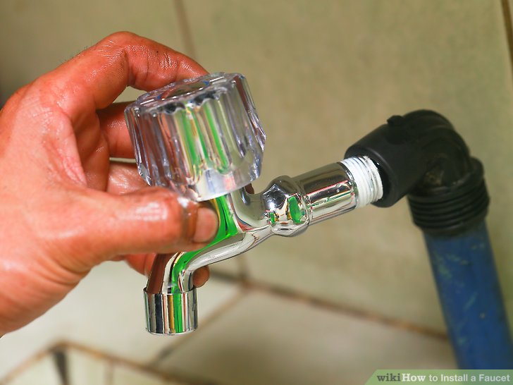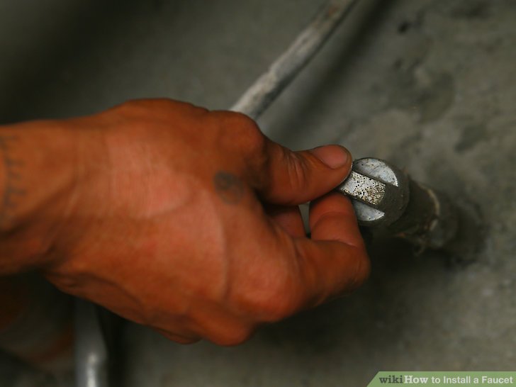 Pressione a torneira no buraco da pia. Alinhe a torneira para mantê-la reta.