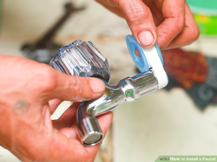 Enrole fita veda rosca ao redor da rosca da torneira onde as mangueiras irão se conectar. Aplique o silicone ao redor do buraco da pia e onde o novo acabamento vai ficar.