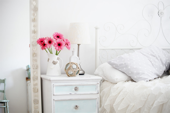 Se você é romântica, busque pendurar um quadro com flores, ou pinte com cores neutras e até mesmo pode-se usar papel de parede.