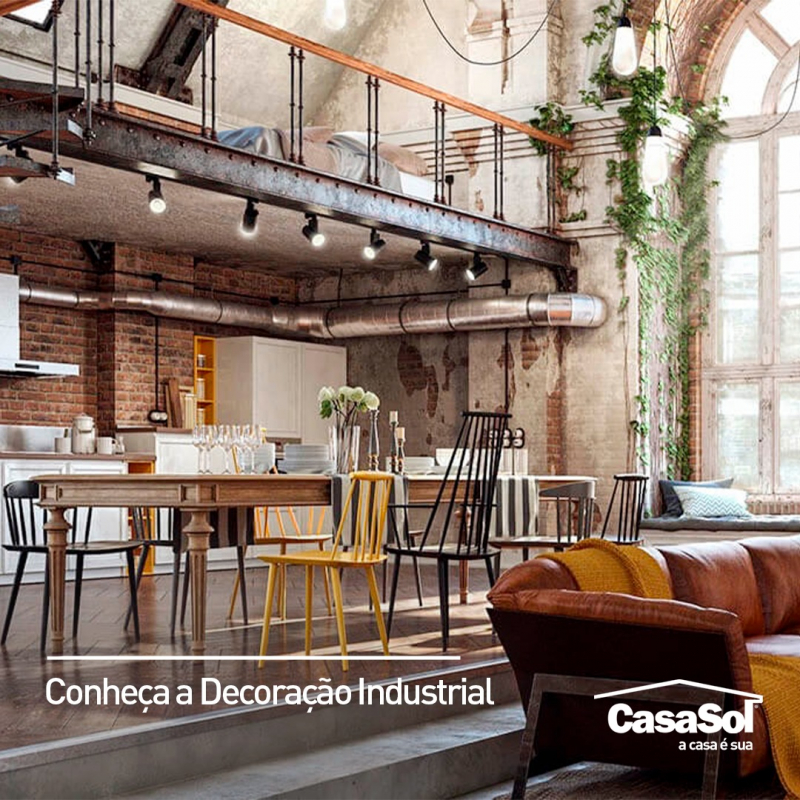 Esse é um dos estilos de decoração que mais fazem sucesso. Ela traz tubulações aparentes, madeira, concreto, metal, vigas expostas, e para isso, esse tipo de decoração necessita de preferência de ambientes amplos e integrados.